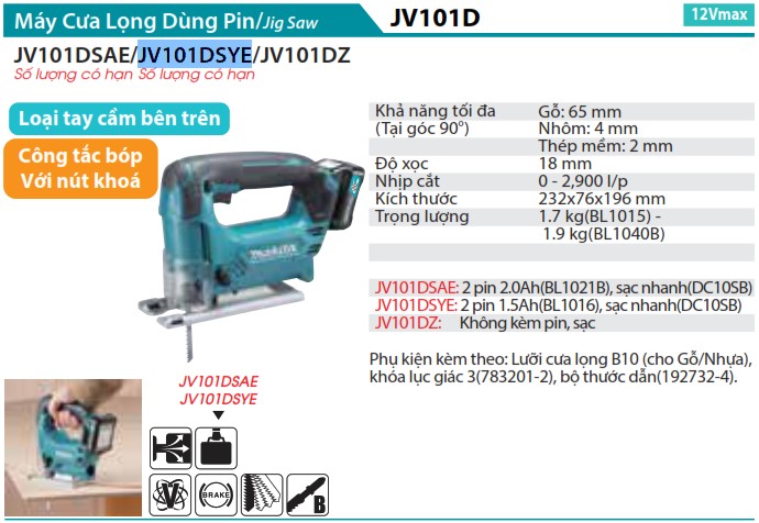 Máy cưa lọng dùng pin Makita JV101DSYE Chat Zalo