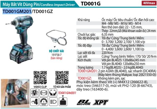 Giới thiệu sản phẩm MÁY BẮT VÍT DÙNG PIN Makita TD001GM201