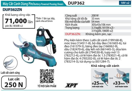 Công dụng và chức năng của Máy Cắt Cành Dùng Pin(18Vx2) (không kèm pin sạc) – Makita DUP362ZN