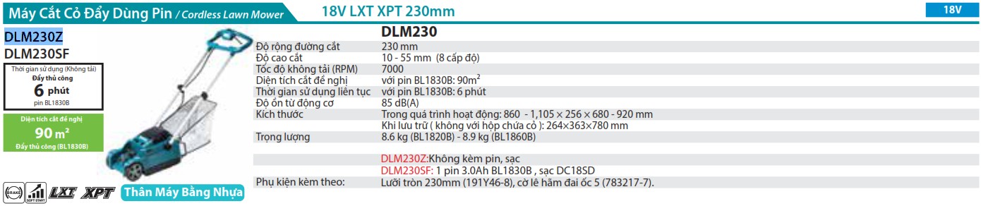 Máy Cắt Cỏ Đẩy Dùng Pin(230MM)(18V) (không kèm pin sạc) – Makita DLM230Z này thực sự mang lại giá trị cao cho người dùng.