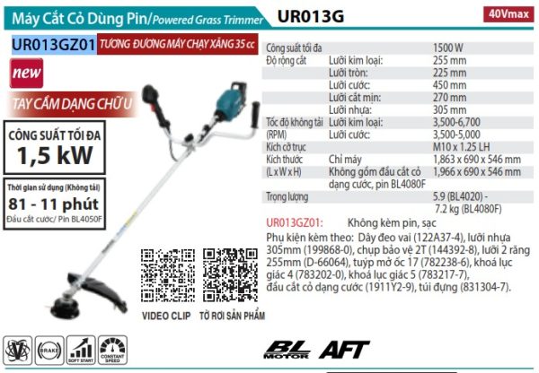 Makita UR013GZ01 Máy cắt cỏ dùng pin Makita UR013GZ01 này đã giúp nhiều người hoàn thành công việc một cách hiệu quả.