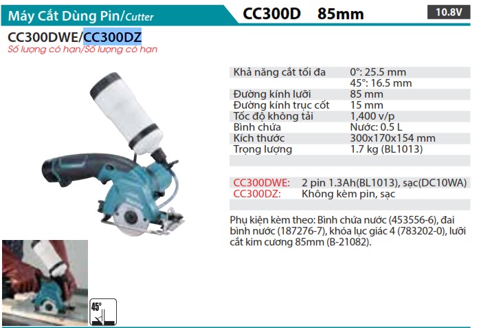 Máy cắt dùng pin CC300DZ Makita CC300DZ giống như hình và mô tả chi tiết trên website.