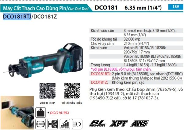 Công dụng và chức năng của Máy Cắt Thạch Cao Dùng Pin(BL)(18V) – Makita DCO181RTJ