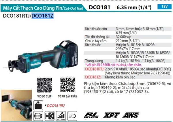 Công dụng và chức năng của Máy Cắt Thạch Cao Dùng Pin(BL)(18V) – Makita DCO181Z