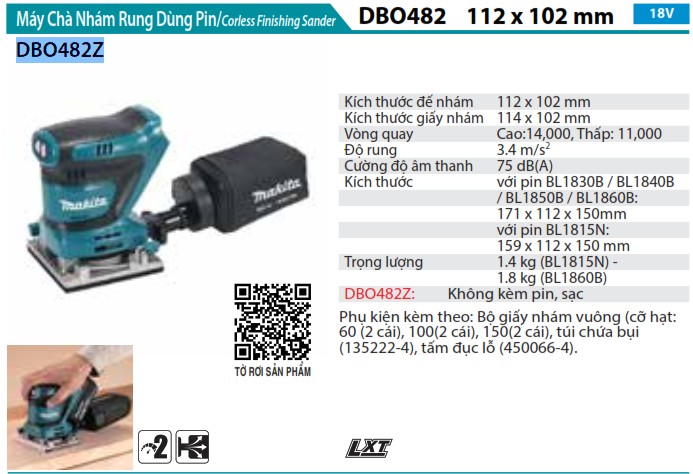Ngoài ra, nếu bạn làm việc với các bề mặt nhỏ, chi tiết hoặc cần sự chính xác cao, DBO482Z sẽ giúp bạn hoàn thành công việc một cách dễ dàng và nhanh chóng.
