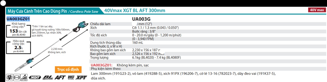 Giới thiệu sản phẩm Máy cưa cành trên cao dùng pin Makita UA003GZ01