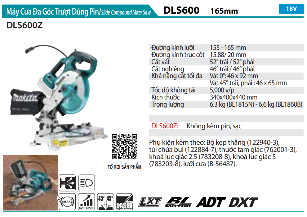 Công dụng và chức năng của Máy Cưa Đa Góc Để Bàn Dùng Pin (BL)(18V) (không kèm pin sạc) – Makita DLS600Z
