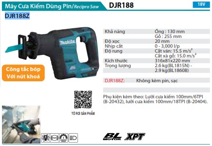 Máy Cưa Kiếm Dùng Pin(BL)(18V) (không kèm pin sạc) - Makita DJR188Z Chat Zalo