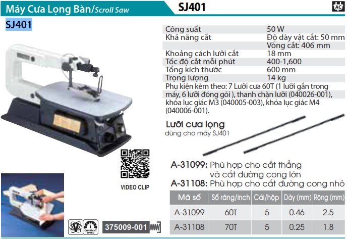 Giới thiệu sản phẩm MÁY CƯA LỌNG BÀN Makita SJ401
