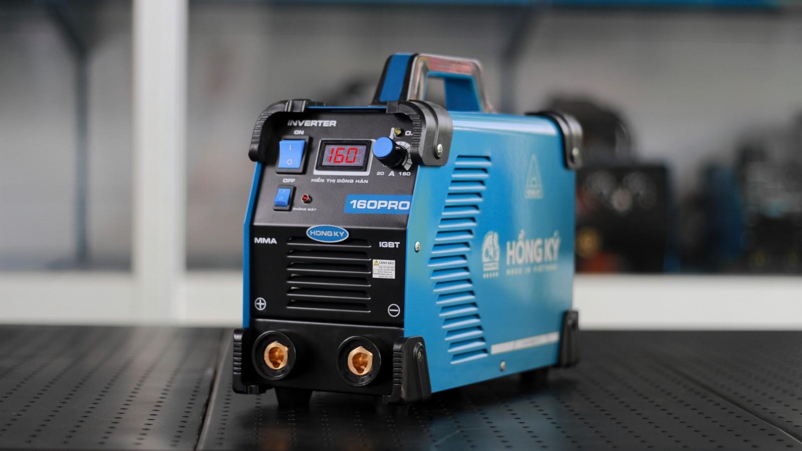 Máy hàn này được trang bị nhiều chức năng hiện đại như mồi lửa nhanh (Hot Start) và tự động bù hồ quang (Arc Force). Chức năng Hot Start giúp tăng cường dòng hàn khi bắt đầu, làm cho việc mồi lửa trở nên dễ dàng hơn, đặc biệt khi sử dụng que hàn khó bắt lửa. Trong khi đó, chức năng Arc Force tự động điều chỉnh lực hồ quang để giữ cho mối hàn ổn định, giảm thiểu tình trạng dính que. Ngoài ra, máy còn có tính năng chống giật, bảo vệ an toàn cho người dùng khi làm việc trong môi trường ẩm ướt, cùng với đèn báo quá nhiệt giúp người dùng dễ dàng theo dõi tình trạng hoạt động của máy. - Cách sử dụng và bảo quản Máy hàn điện tử Hồng Ký MMA 160 PRO