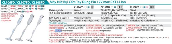 Công dụng và Chức năng của “Máy Hút Bụi Dùng Pin(12V MAX) (không kèm pin sạc) – Makita CL106FDZW”