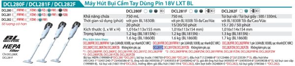 Máy Hút Bụi Dùng Pin(HEPA/BL)(18V) (không kèm pin sạc) - Makita DCL281FZ Chat Zalo