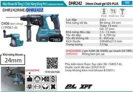 Hơn nữa, nếu bạn là một người đam mê sửa chữa đồ đạc trong gia đình hoặc thường xuyên thực hiện các dự án DIY, chiếc máy này cũng sẽ đáp ứng nhu cầu của bạn. Tính năng khoan đa dạng và thiết kế tiện dụng của Makita DHR242Z chắc chắn sẽ làm hài lòng cả những người khó tính nhất.