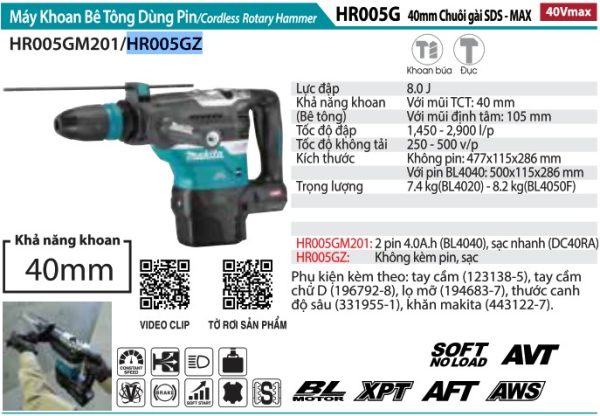 Mọi người đều cho rằng HR005GZ Máy Khoan Bê Tông Dùng Pin Makita HR005GZ này có chất lượng tốt và tính năng nổi bật.