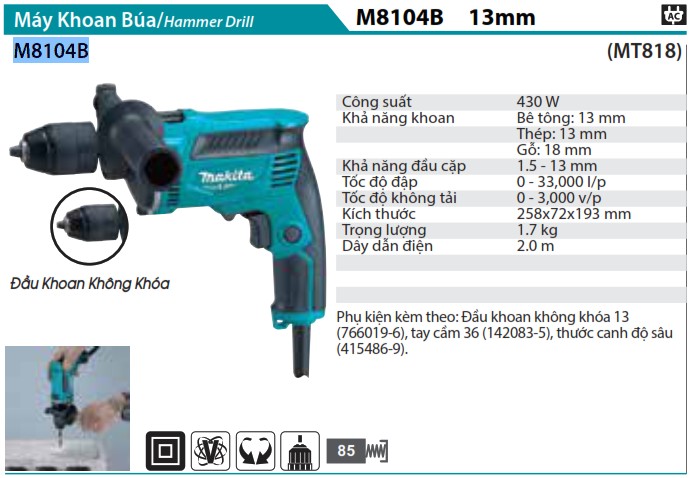 Giới thiệu sản phẩm MÁY KHOAN BÚA MAKITA M8104B