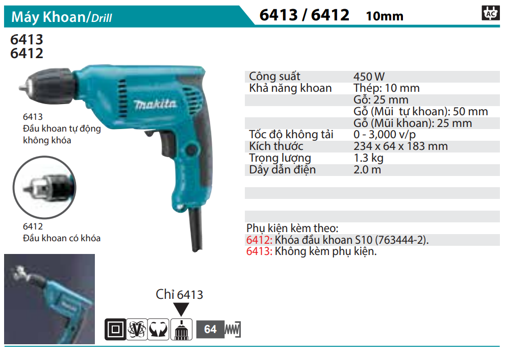 Máy Khoan(10MM) - Makita 6413