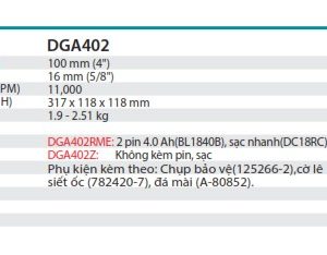 Máy Mài Góc Dùng Pin (kèm 02 pin 4.0Ah + sạc nhanh) – Makita DGA402RME