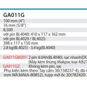 Máy Mài Góc Dùng Pin(không kèm pin sạc) – Makita GA011GZ