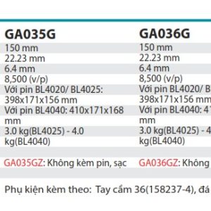 Máy Mài Góc Dùng Pin(không kèm pin sạc) – Makita GA036GZ