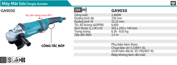 Máy Mài Góc(230MM/2400W/CÔNG TẮC BÓP) - Makita GA9030 Gọi Ngay