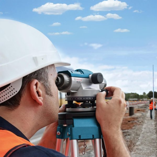 - Đo độ cao: Máy thủy bình Bosch GOL 32D được sử dụng để đo độ cao của các điểm so với một mặt phẳng chuẩn, giúp đảm bảo sự bằng phẳng của công trình.