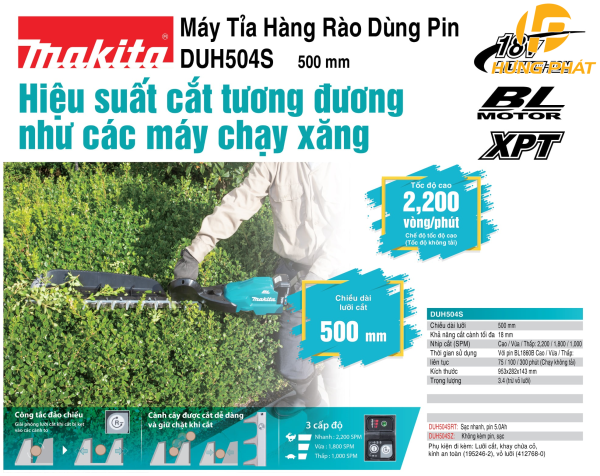 1. Giới thiệu sản phẩm Máy tỉa hàng rào dùng pin Makita DUH504SZ