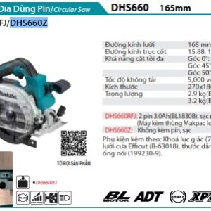 Máy Cưa Đĩa Dùng Pin(165MM/BL)(18V) (không kèm pin sạc) – Makita DHS660Z