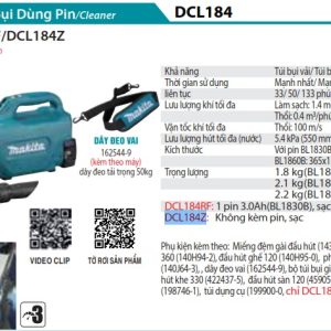 Máy Hút Bụi Dùng Pin(18V) (không kèm pin sạc) – Makita DCL184Z