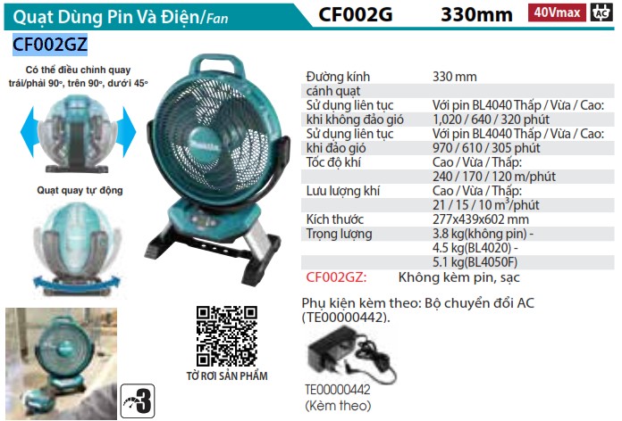 Mọi người đều cảm thấy CF002GZ Quạt Dùng Điện Và Pin Makita CF002GZ này thật sự đáng tin cậy.