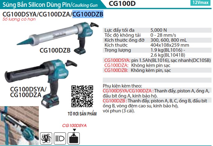 Xin chào các bạn! Hôm nay, chúng ta sẽ cùng nhau khám phá một sản phẩm cực kỳ hữu ích trong ngành xây dựng và sửa chữa: Súng Bắn Silicon Dùng Pin – Makita CG100DZB. Đây là một công cụ lý tưởng cho những ai thường xuyên làm việc với silicon, không chỉ giúp tiết kiệm thời gian mà còn mang lại kết quả hoàn hảo trong từng chi tiết. Với thiết kế hiện đại và tính năng vượt trội, sản phẩm này chắc chắn sẽ là một trợ thủ đắc lực cho bạn trong các dự án DIY hay chuyên nghiệp.